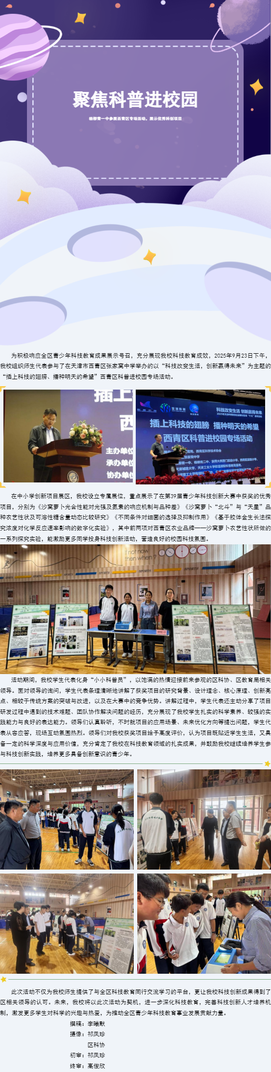 聚焦科普进校园 杨柳青一中参展西青区专场活动,展示优秀科创项目